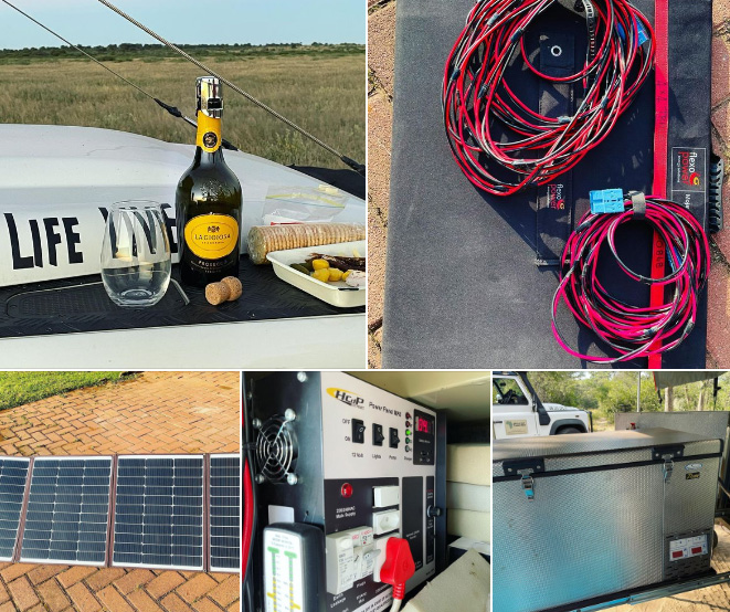 Ice cold sundowners are made possible even after ten days of no electricity with our Afrispoor trailer as it is fitted with Solar Panels. All you need to do is plug in and place them in the sunlight . The trailer has its own DB boards so it is easy to manage the days with power supply or the days when using Solar. Sundowners definitely make our trips more memorable.